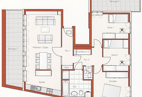 2 Zi.-Wohnungen bis 5 Zi.-Wohnungen in einer Größe von 50 m² - 135 m² Wohnfläche